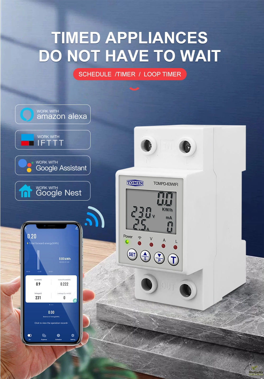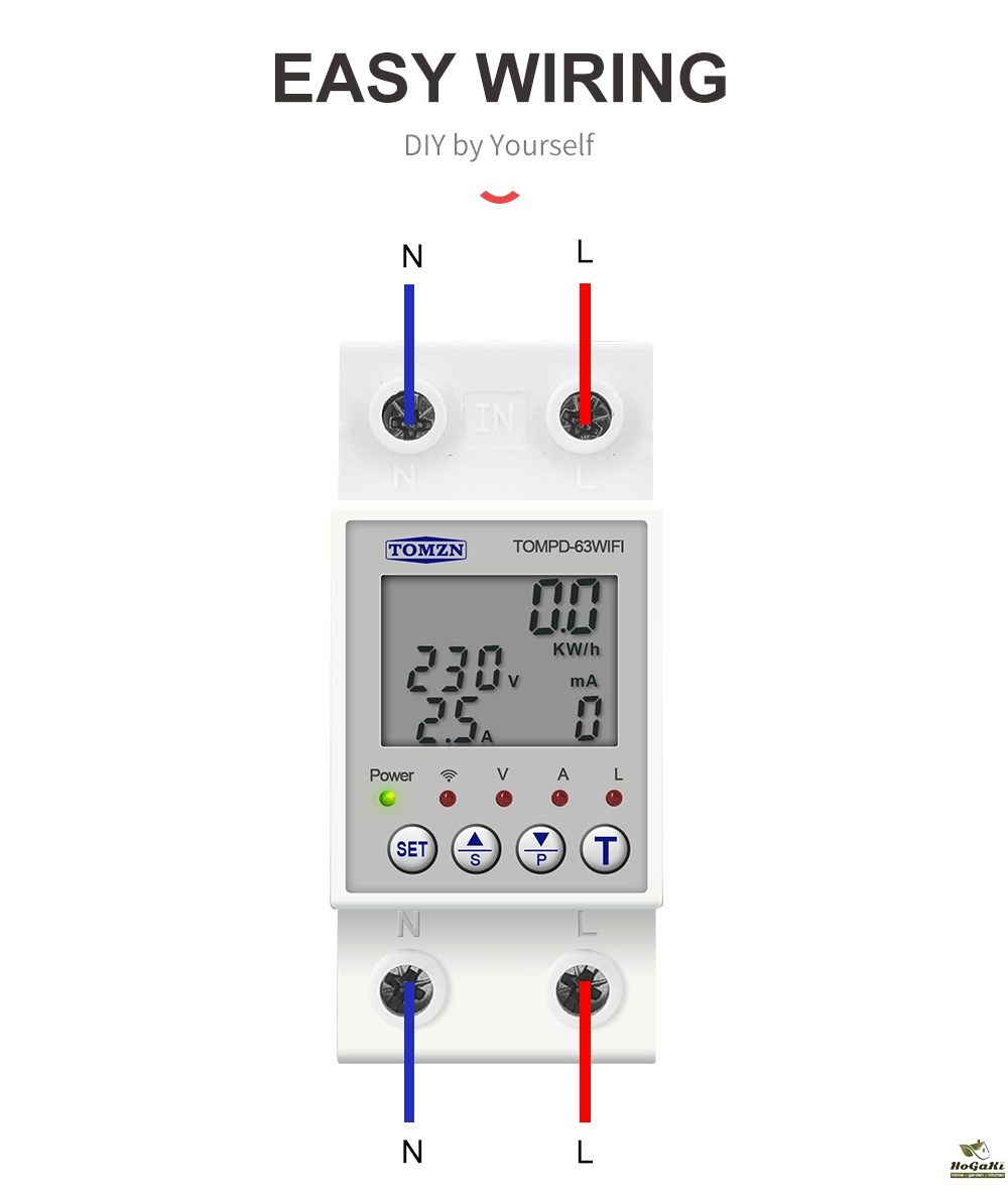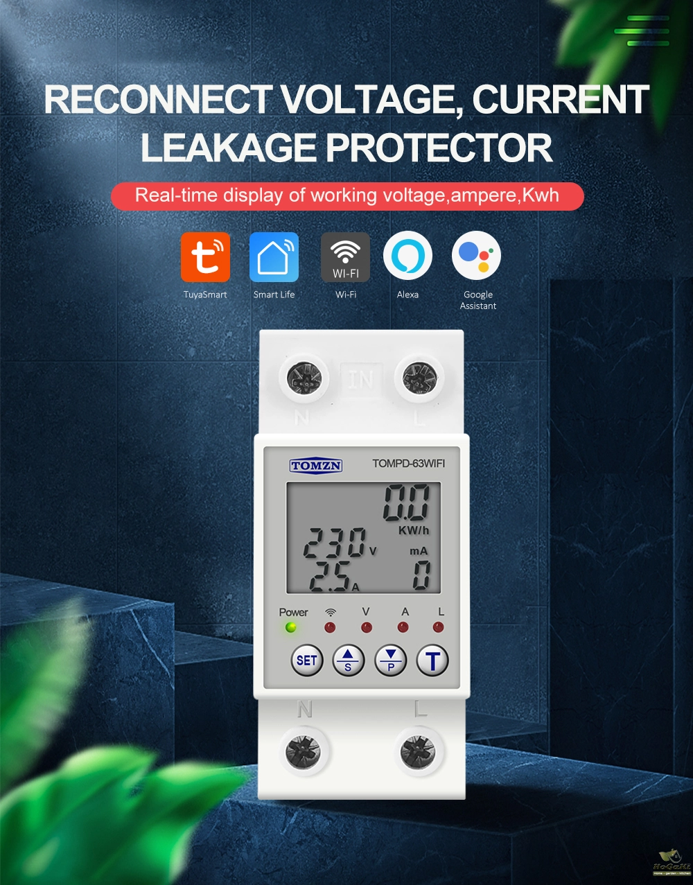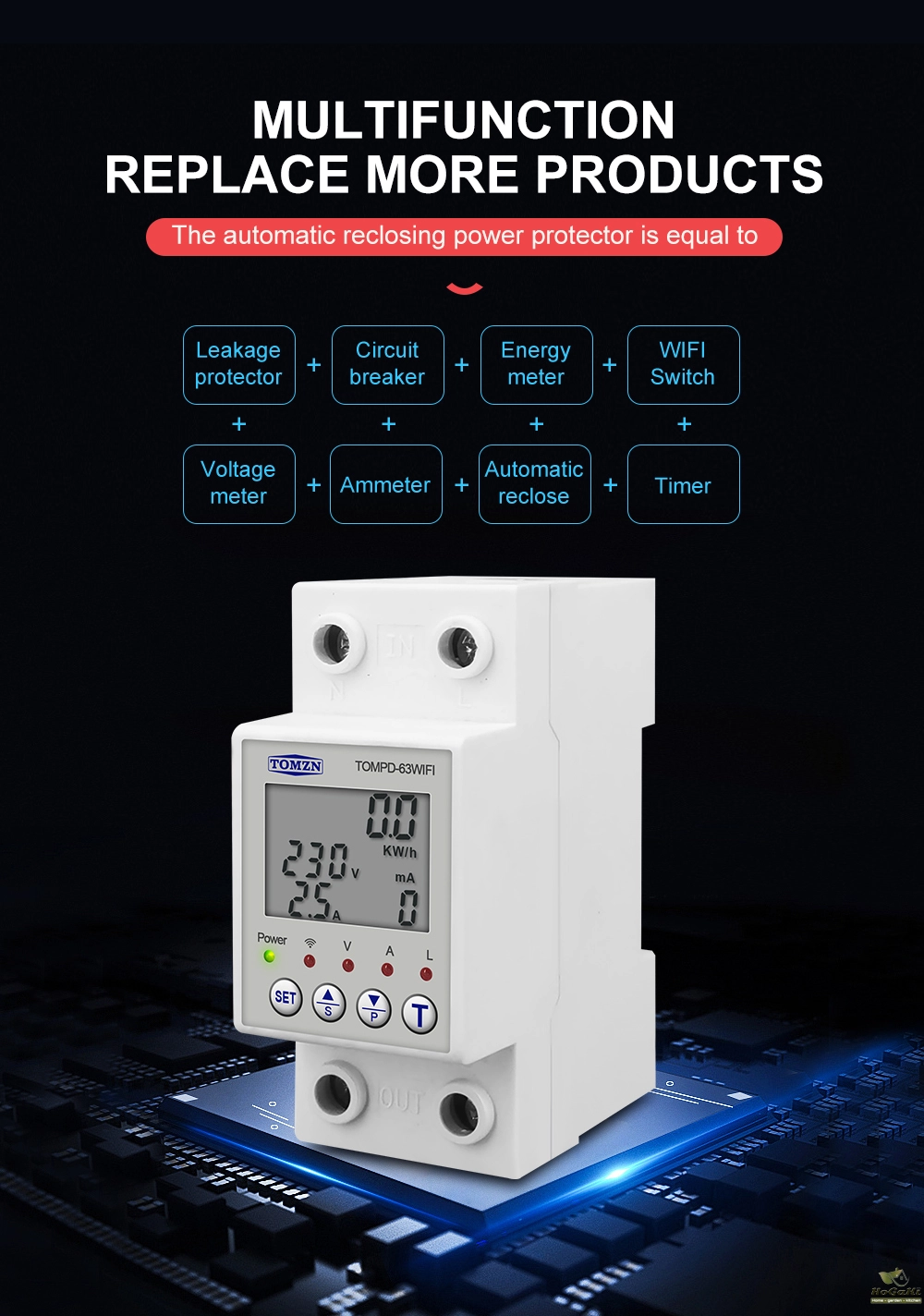 7.Over current protection 1A-63A (adjustable) (default: 63A)