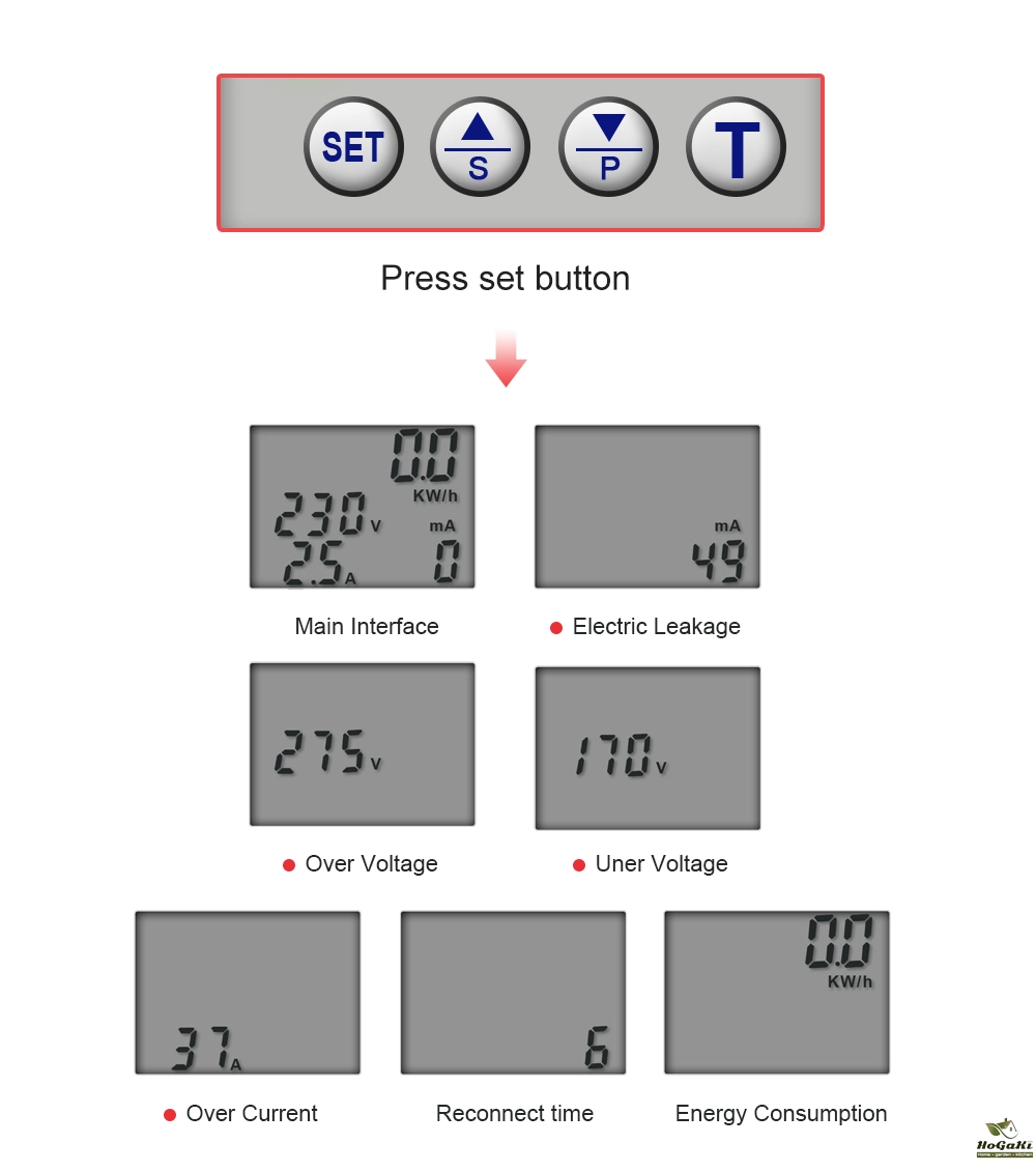 4.Can set over voltage/under voltage/over current /leakage current in app or can set these by manual