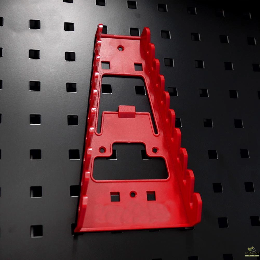 Standard solid plastic wrench organizer tray, designed for standard machine/auto repair wrenches, ideal for storage in toolboxes or walls;