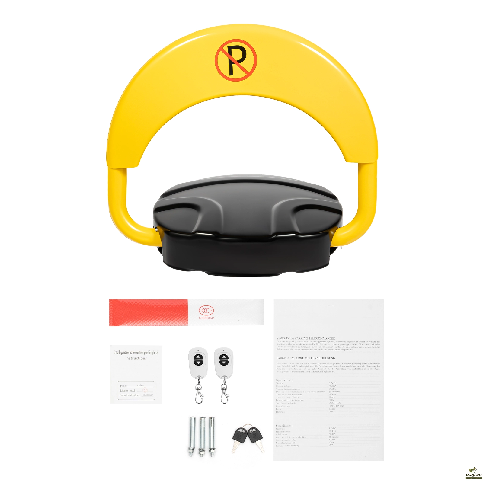 Eye-catching Appearance: The prominent bright yellow and the red no-parking sign make our remote parking lock very eye-catching; The equipped reflective strip allows pedestrians and vehicles to notice it even at night or in dimly lit garages.