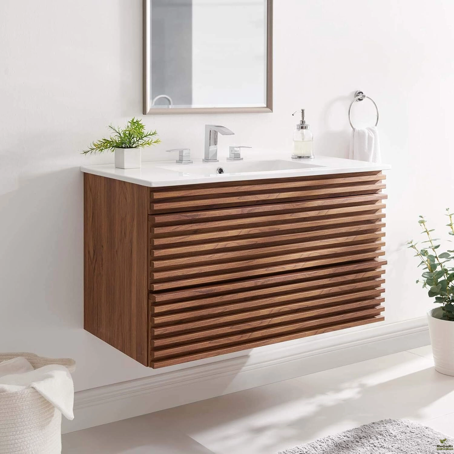 25 Inch Bathroom Vanity Cabinet with Vessel Sink and Stainless Faucet Two Door Storage Open Shelf Backsplash Pop Up Drain