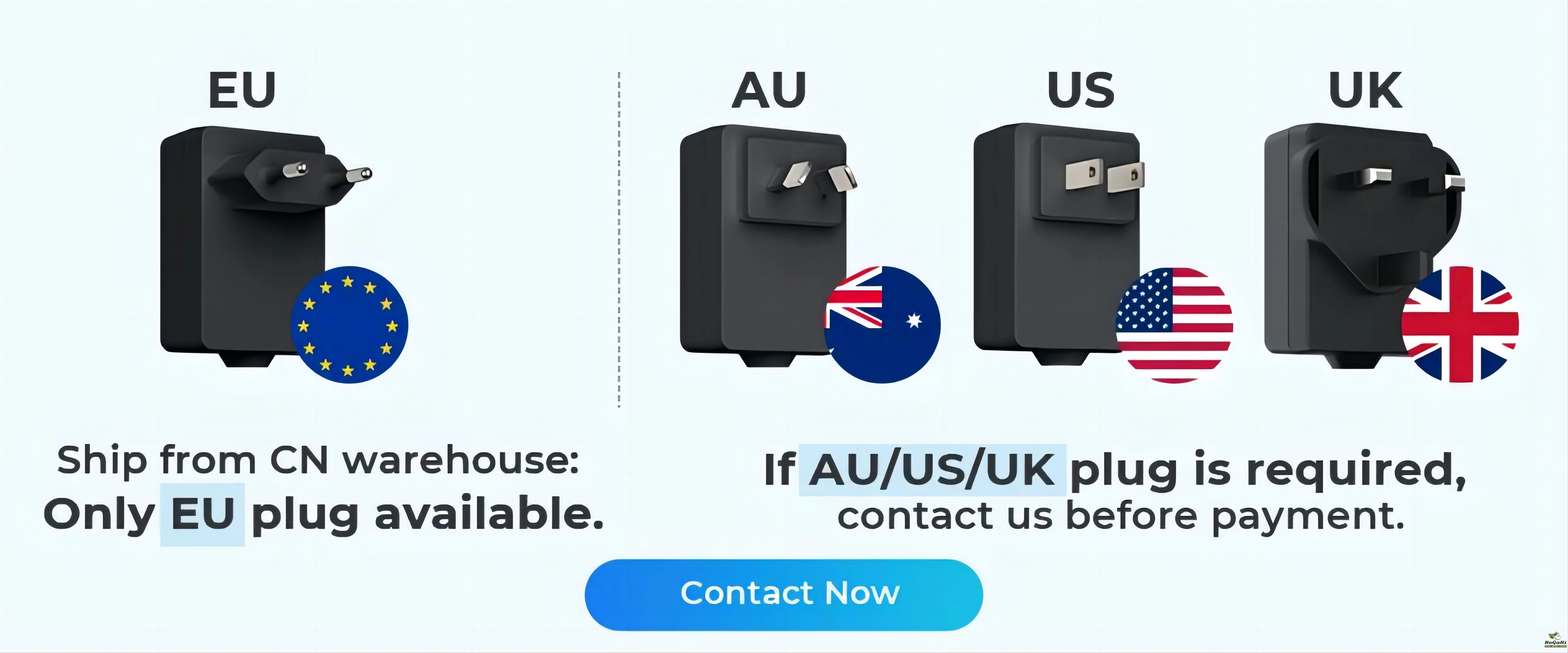 The default power adapter of WiFi version cameras from CN warehouse is EU plug.