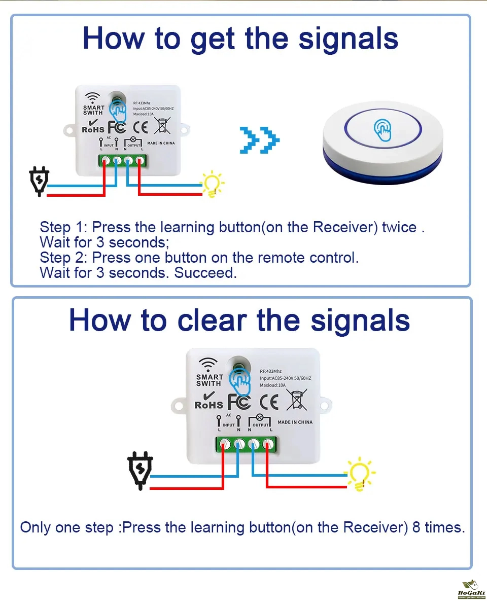 A:Step 1: Press the learning button(on the Receiver) twice . Wait for 3 seconds;