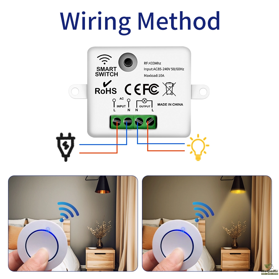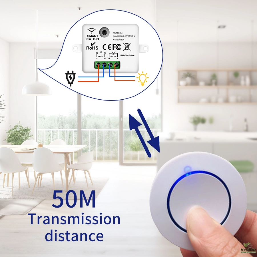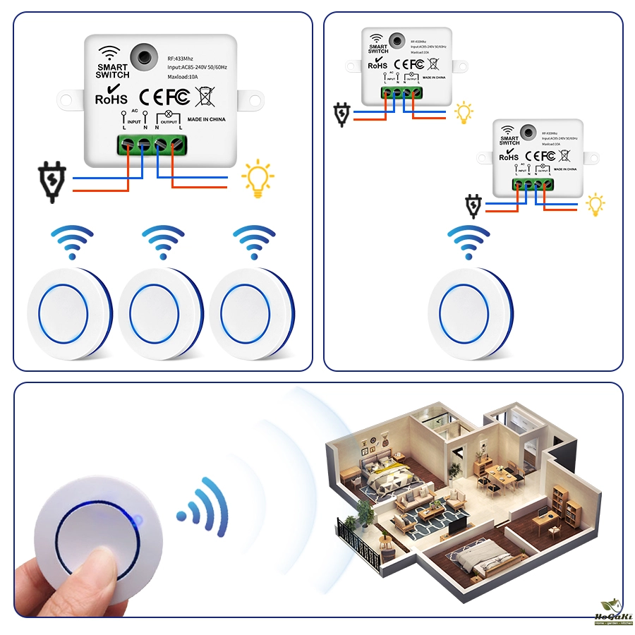 The relay controller is RF Receivers, the round wall switch is RF only. The wall switch itself cannot control lights ON/OFF. It needs to work withRF receiver together.