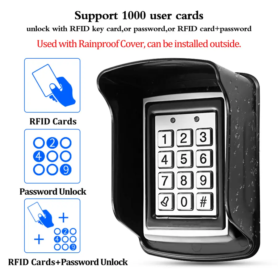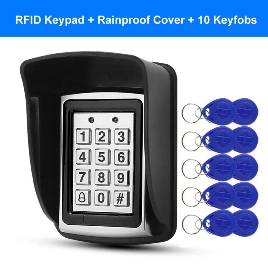 RFID Metal Access Control Keypad Waterproof Rainproof Cover Outdoor Door Opener Electronic Lock System 10pcs EM4100 Keychains