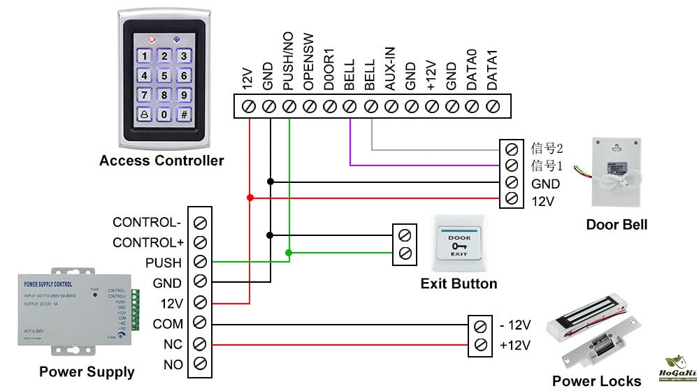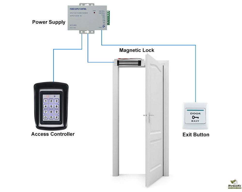 The power supply and electric lock, exit button, door bell are not included in the package, need to buy extra.