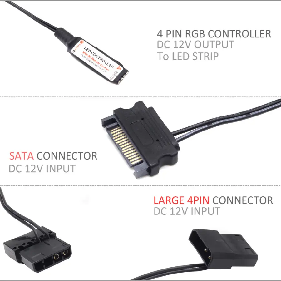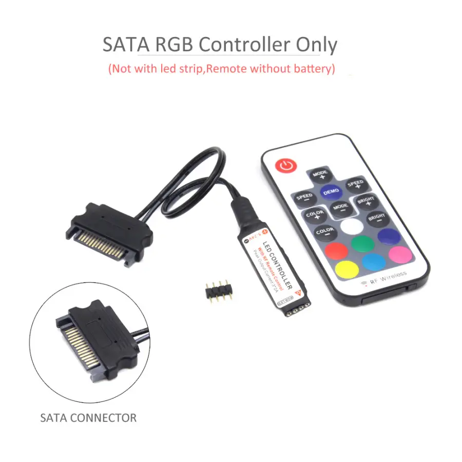 RGB LED Controller 12V SATA RF Wireless Remote Control SATA Large 4Pin RGB LED Strip Controller for PC Computer Case Lighting
