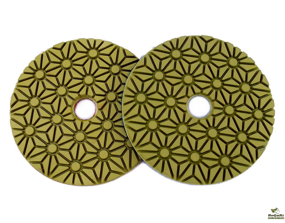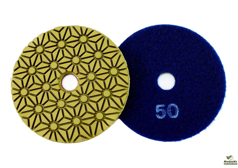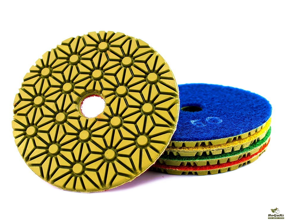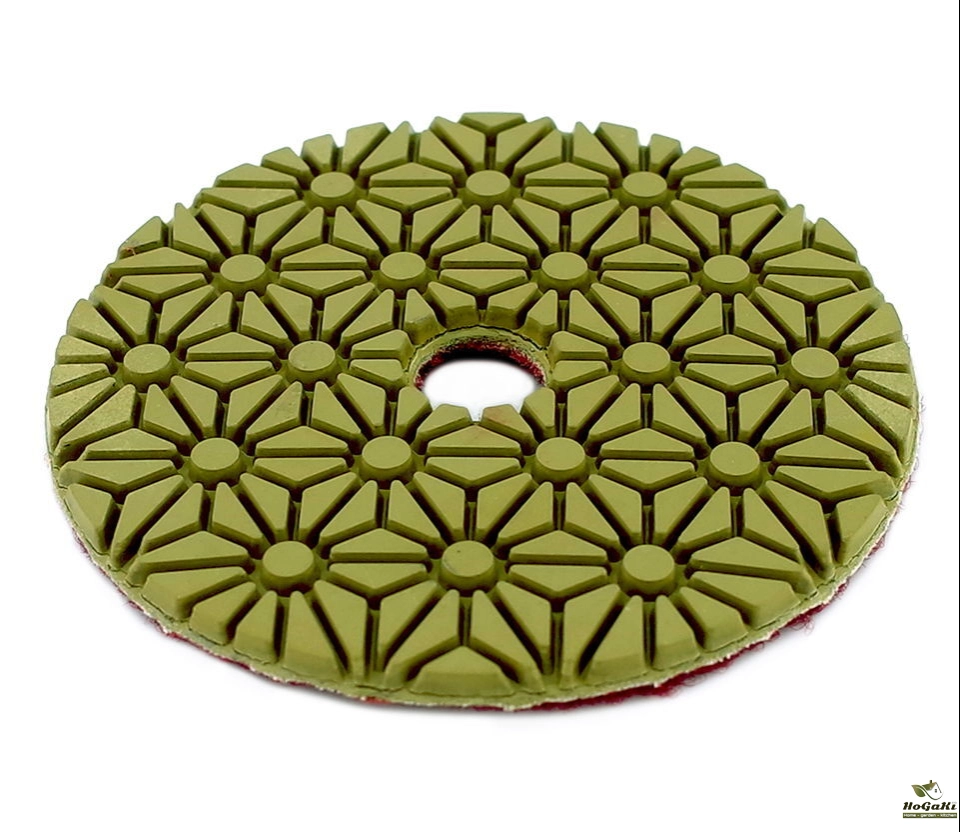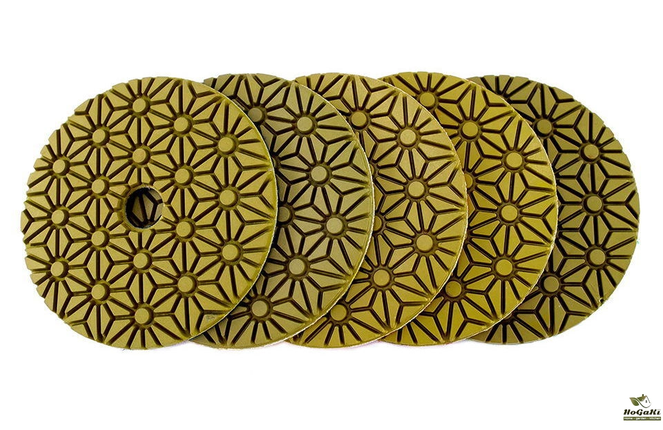 This is 5 Steps 4inch flexible resin wet diamond polishing pad for polishing and grinding concrete floor, granite, marble, limestone and all kinds stones, Tiles etc.
