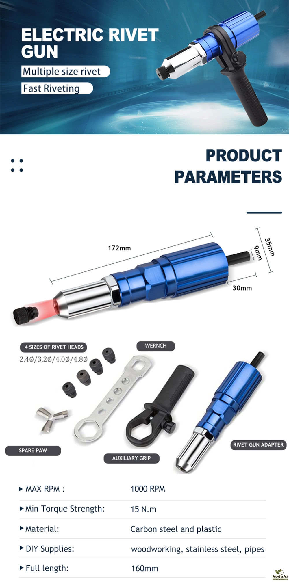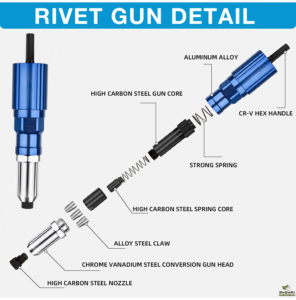 Electric rivet gun 2.4mm-3.2mm-4.0mm-4.8mm rivet nut gun drill bit adapter Cordless riveting tool Insert nut pull rivet tool