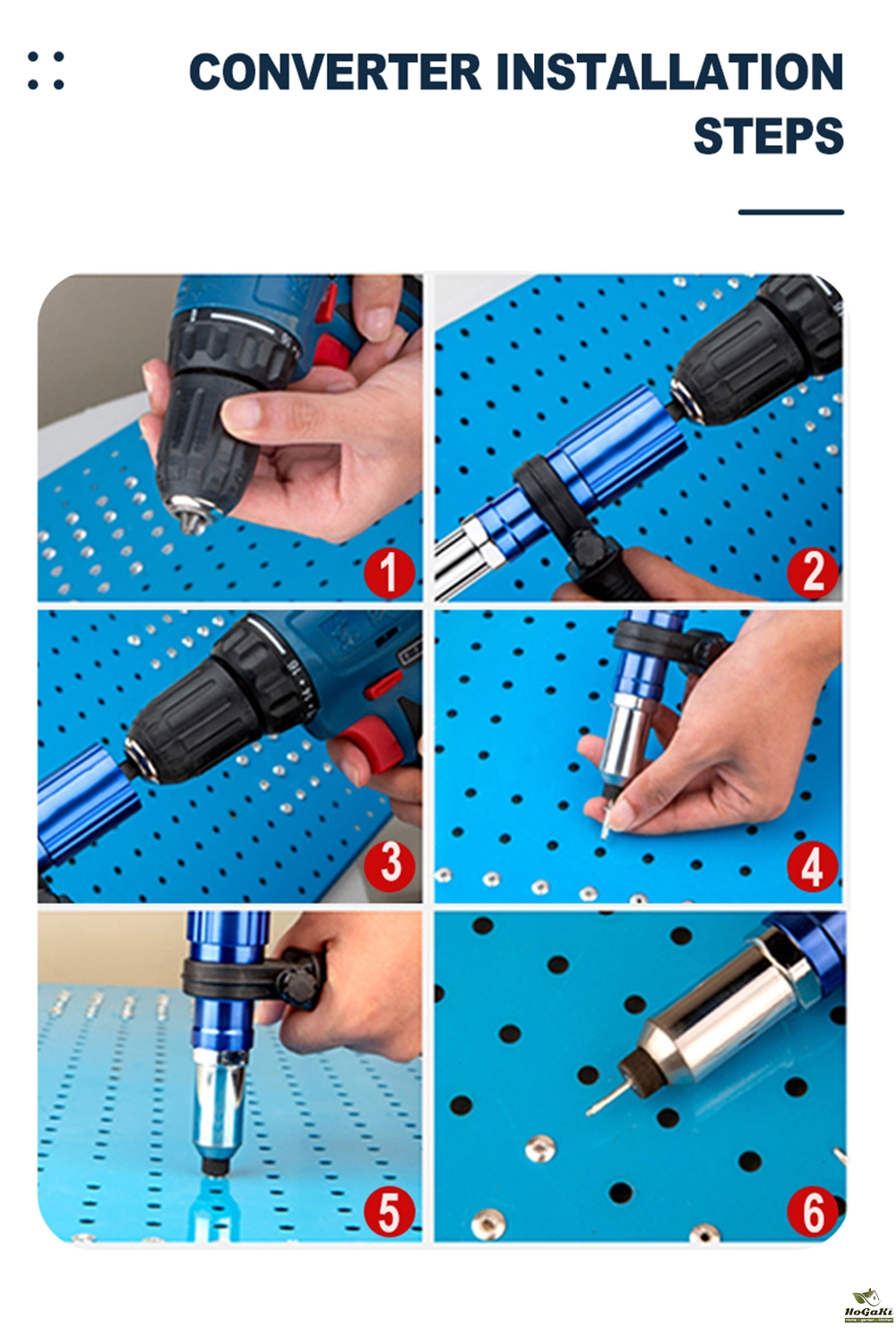 1. When using the rivet gun adapter, you need to hold the front handle to work normally.