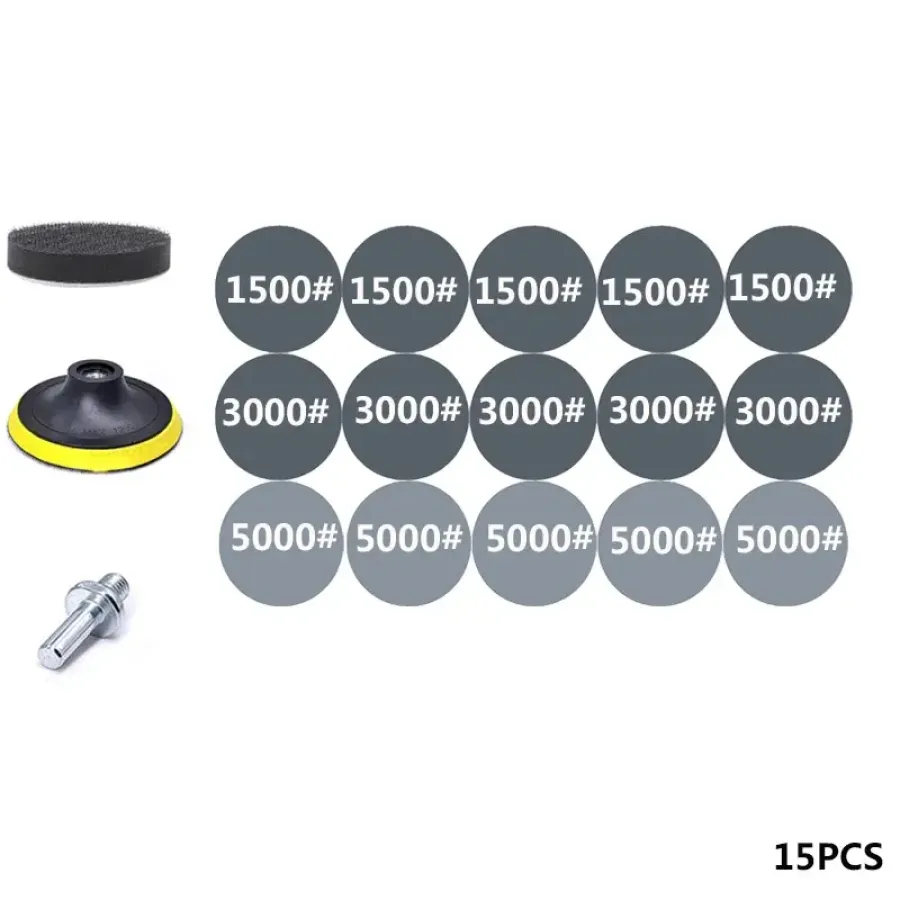 30/15PCS 3inch sanding discs 75mm Waterproof Sandpaper Hook & Loop Sand paper 800-5000 grit Assorted for Wet/Dry Polishing
