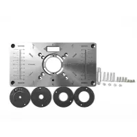 A set of woodworking bench tools includes 1 router table insert plate, 4 pieces router insert rings and some fixing screws.
