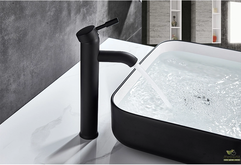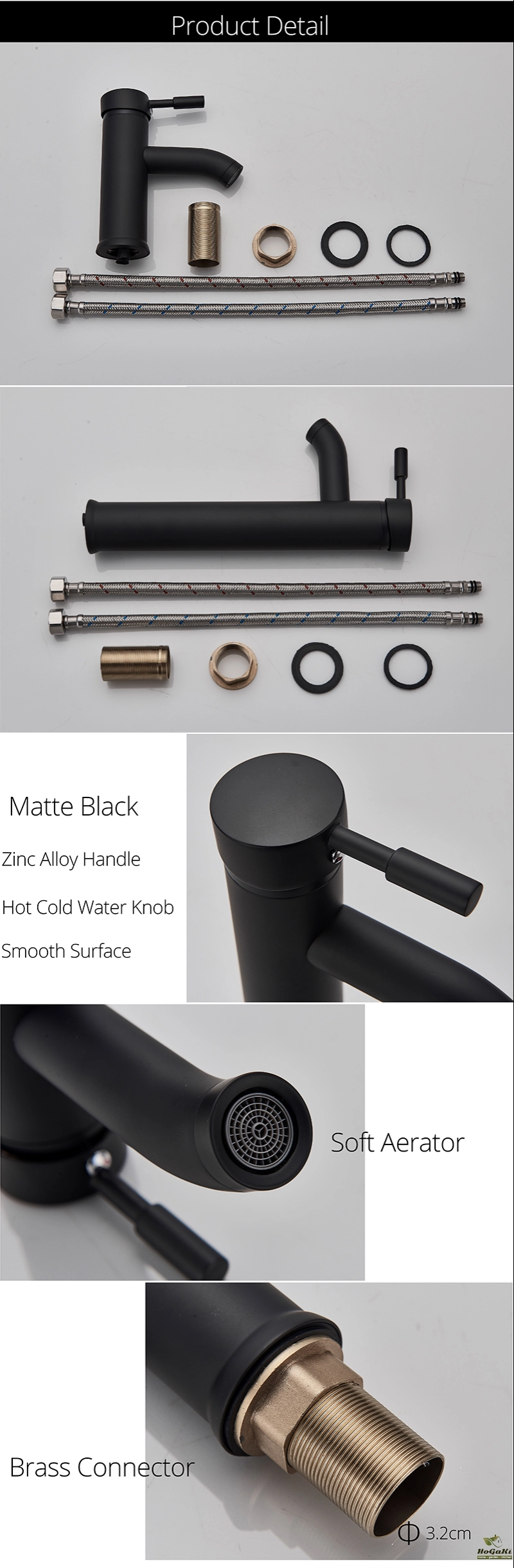 Matte Black Basin Sink Faucet Single Lever Hot Cold Water Tap Deck Mounted Brass Bathroom Mixers Single Hole Tap