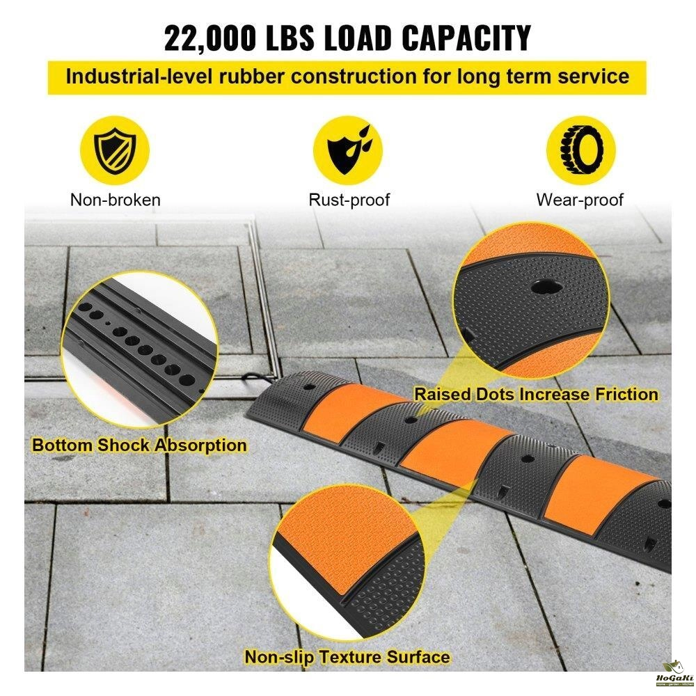 Cable Protector Ramp, 5 Packs 2 Channels Speed Bump Hump, Rubber Modular Speed Bump Rated 11000 LBS Load Capacity