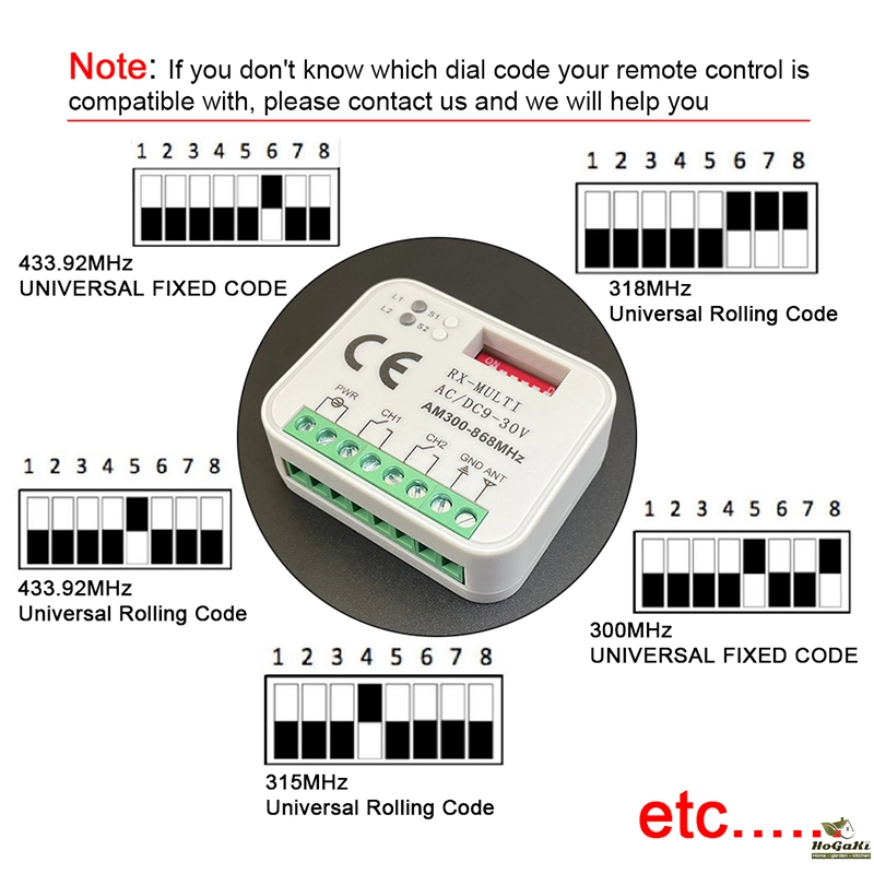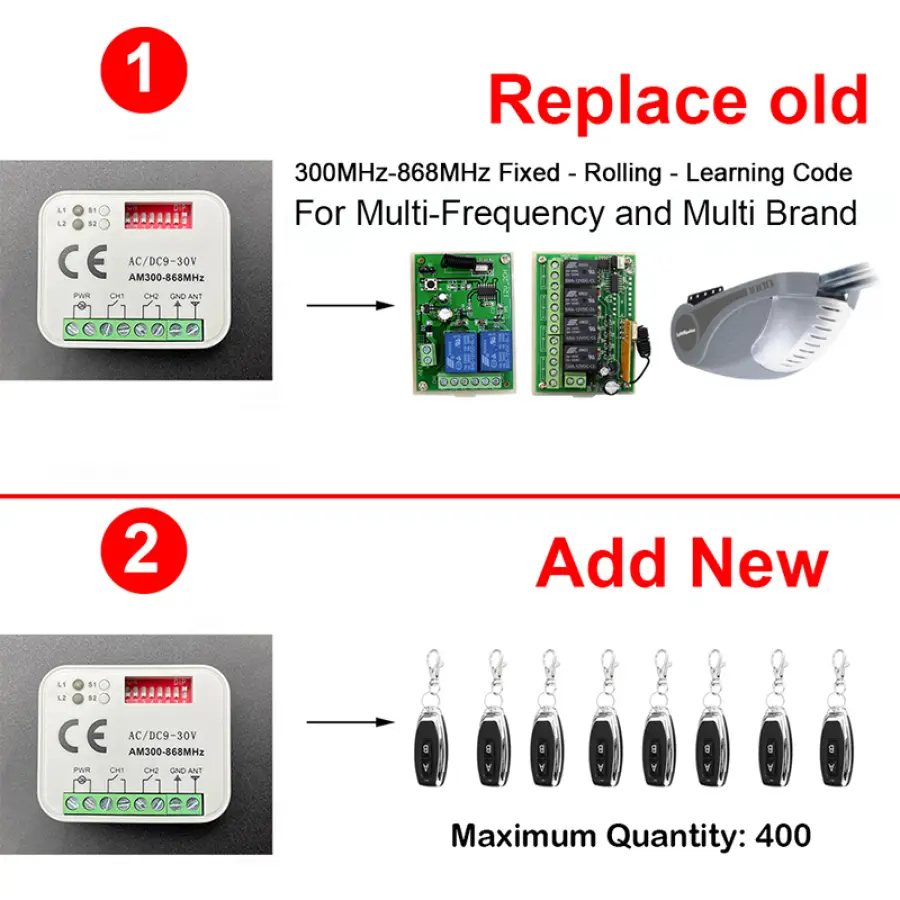 Multi-Frequency 300MHz-868MHz Garage Door Remote Control RX-Multi Receiver
