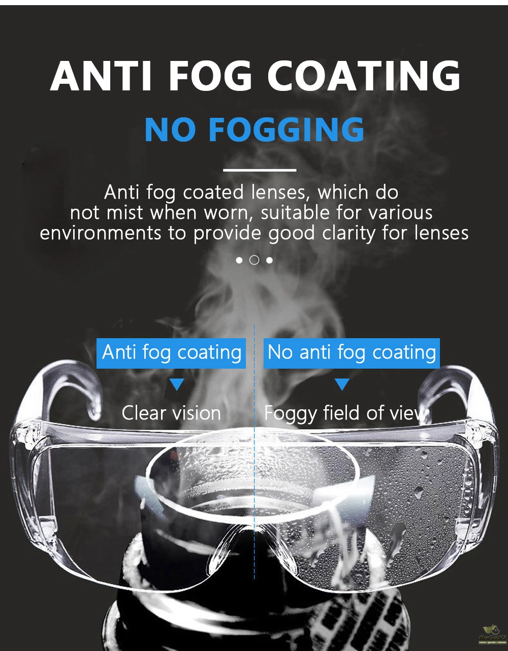 4. Crystal Clear Vision:Clear lens and high-performance dual anti-fog/anti-scratch coating ensures clear vision in almost any indoor work environment.