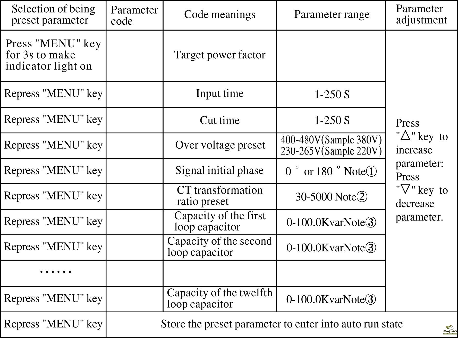 should adjust the parameter to"0"; When they are on Reverse polarity,user should adjust the parameter to"180"; If user can't judge polarity, off all load, then input one group or several groups capacitors,now the power factor that controller displayed is ncgativeand very low.If the power factor is not negative,it can be judged that the voltage signal and current signal are on Reverse polarity.If the initial phase is"180",user should adjust it to"0"and while itis"0",user should adjust it to"180", User should confirm this parameter correct or not after one controller is finished installation,or will cause the abnormal operation for controller.