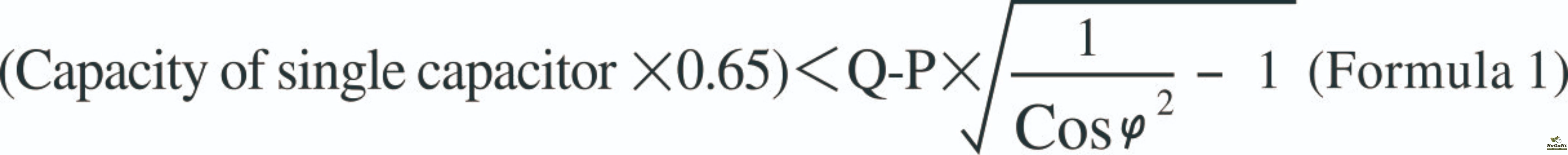2) When the power factor of electric nerwork is higher than target power factor, and the capacitor bank can't cut automatically, user should consider the following conditions is tenable or not.Use P to indicate the acuive power of electric network, Q to indicate reactive power of present electricc network and cosφ to indicate target power lactorl.Formula 2 must be tenable.