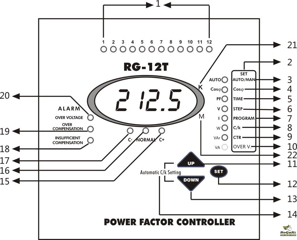 1. 1,2,.........,12: Shows the status of each capacitor steps.