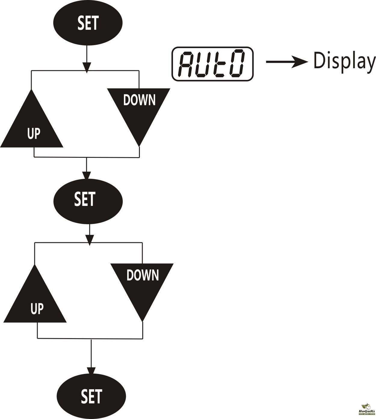 AUTO/MAN setting is selected by pressing SET button. If the device is in Manual Mode, (A OF) symbol is displayed.If the device is in Automatic Mode, (A ON) symbol is displayed.