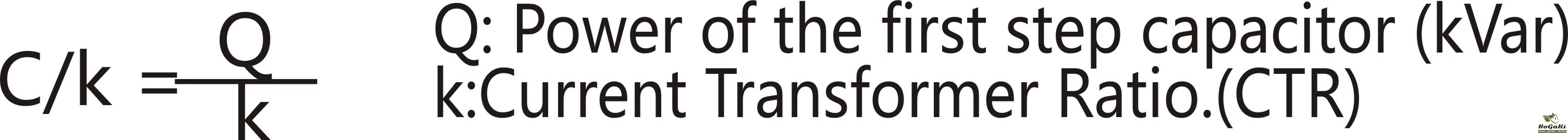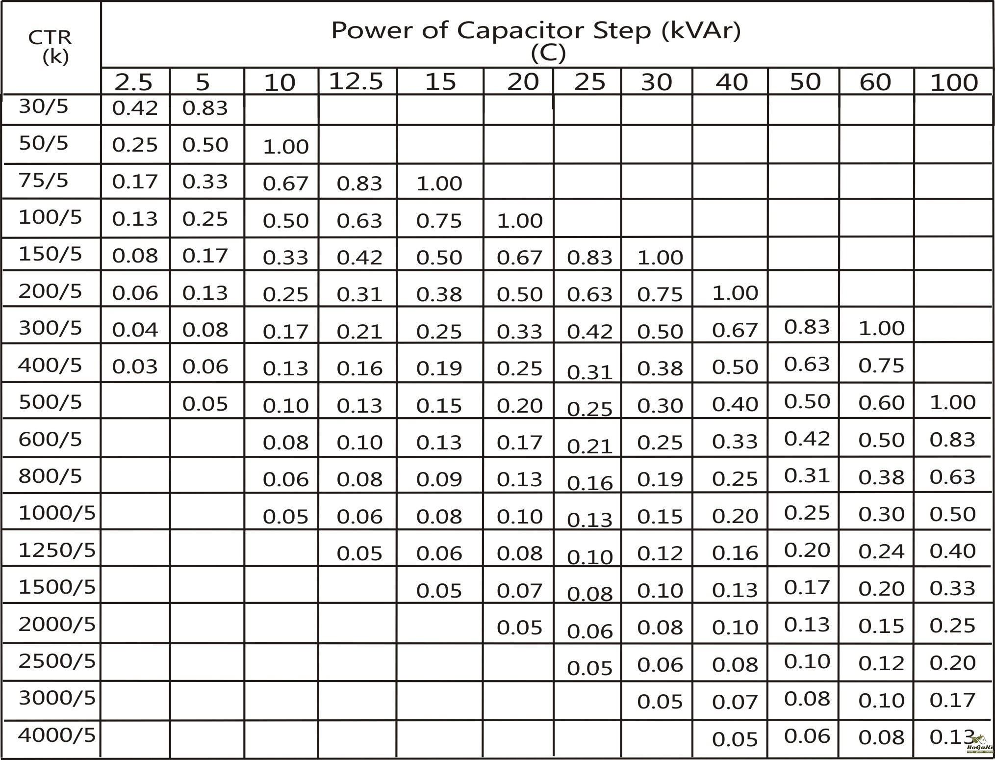 Let the power (C) of the first step capacitor is 5 kVr and the Current Transformer Ratio(k) is 100/5.Then the C/k value is: