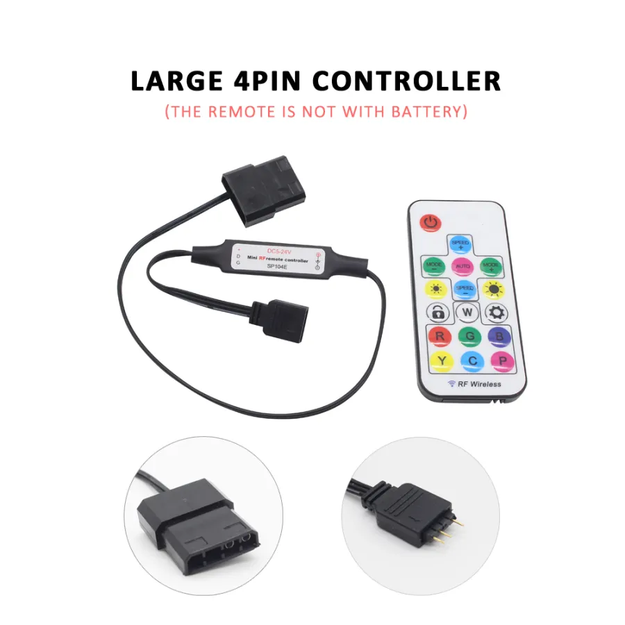 ● It adopts Molex 4Pin 3PIN interface, compatible with computer motherboard plug, input interface line sequence +5v, DA, GND, input power terminal adopts Molex 4pin interface universal, RF remote control, distance up to 8-25 meters, operation is sensitive and user-friendly, wiring is simple and convenient Support for custom single- and double-line LED driver ICs on the market; with more than 300 kinds of pattern effects, colorful.
