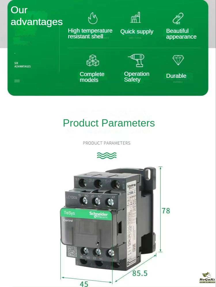 Contactors can be used to form mechanical reversible interlocking magnetic starter, star delta decompression starter, and multiple derivative series products such as additional auxiliary contact groups, air delay heads, etc. can be combined according to the user's choice.