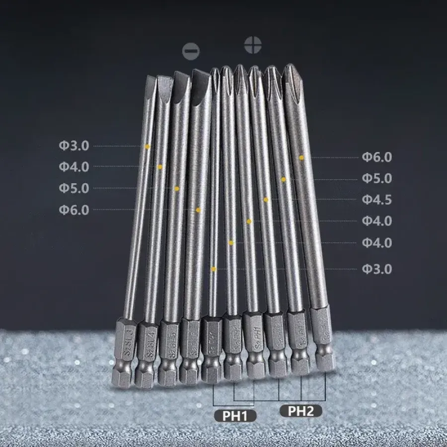 Phillips: PH2*diameter 4mm,PH2*diameter 4.5mm,PH2*diameter 5mm,PH2*diameter 6mm,PH1*diameter 3mm,PH1*diameter 4mm