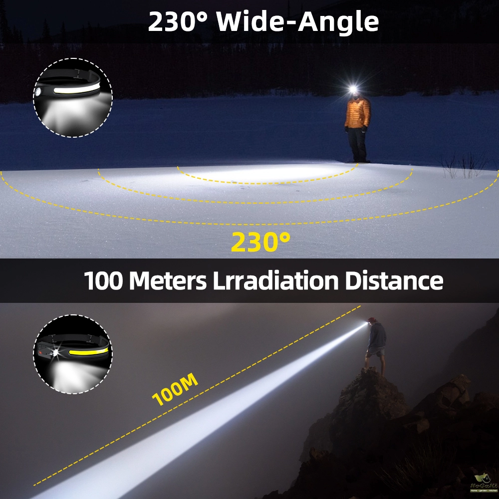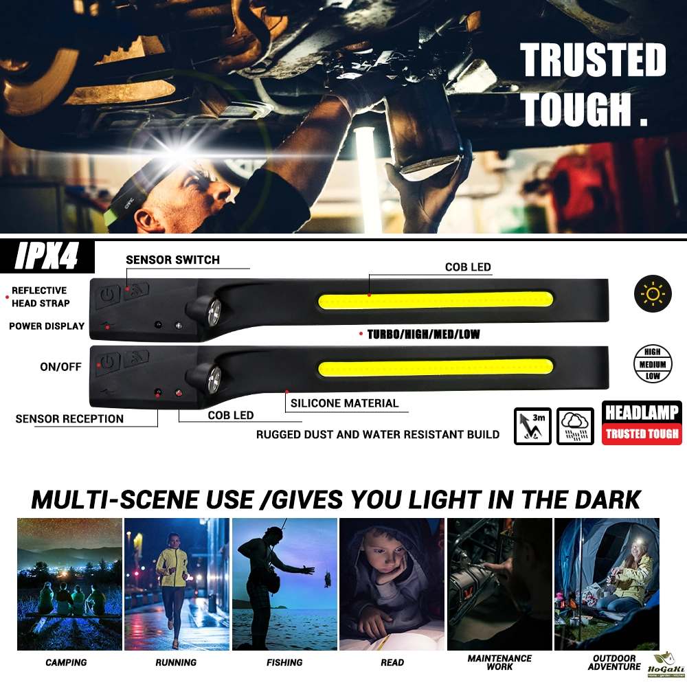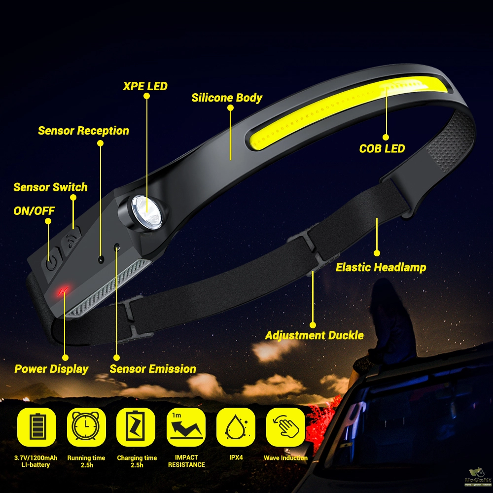 Sensor Headlamp LED Head Flashlight Rechargeable Headlight Head Torch Built-in Battery 5 Lighting Modes Fishing Camping Lantern