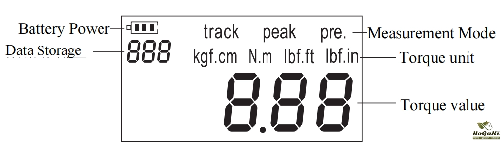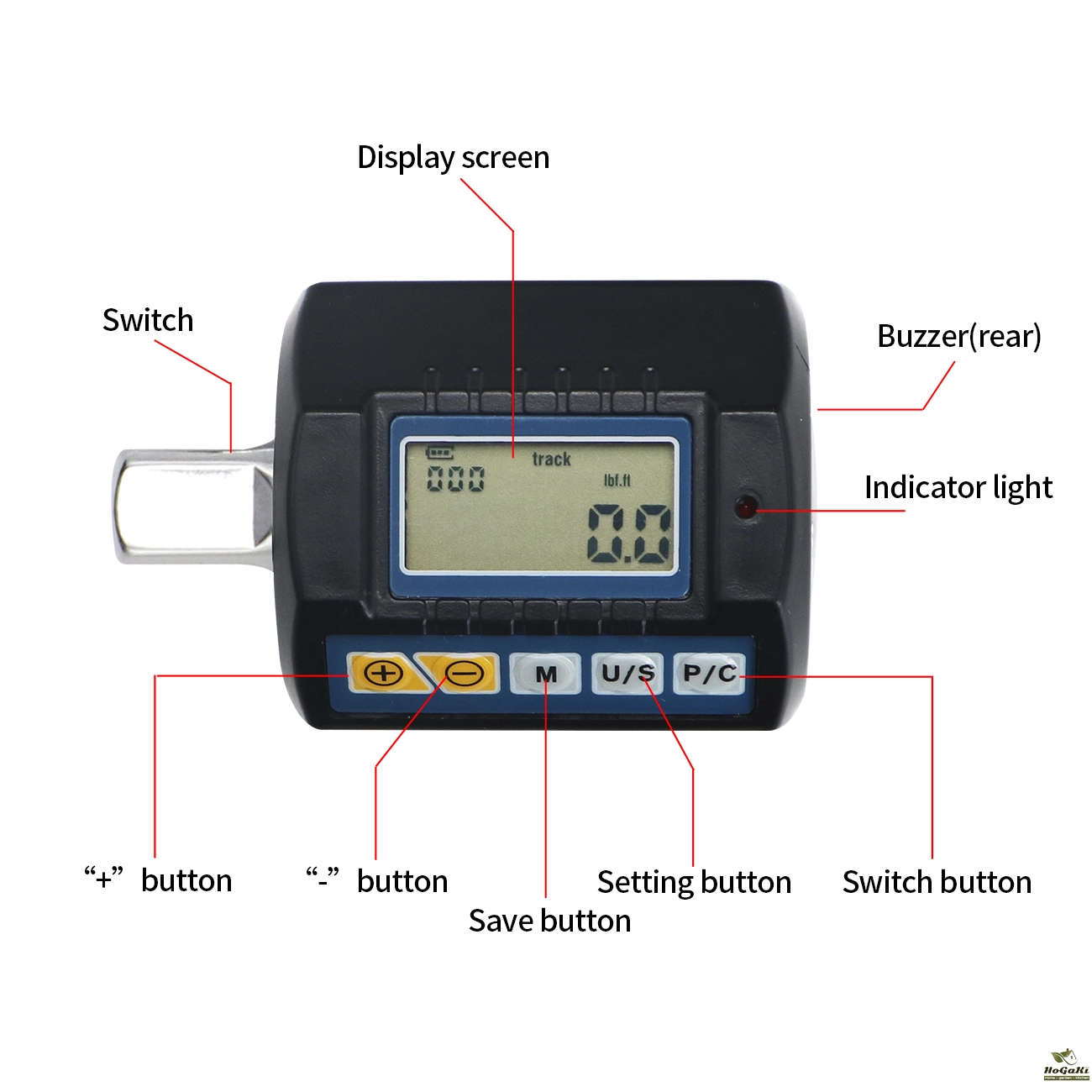 2. Four kinds of torque units can be switched freely: kgf.cm, Nm, lbf.ft, lbf.in.