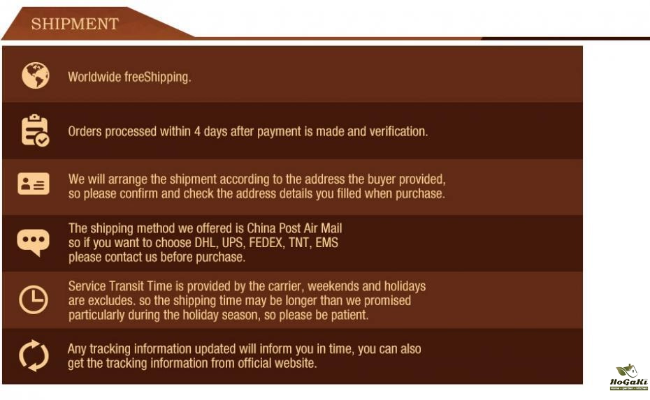 Packages from our warehouse in China will be shipped by ePacket or EMS depending on the weight and size of the product. Packages shipped from our US warehouse are shipped through USPS.