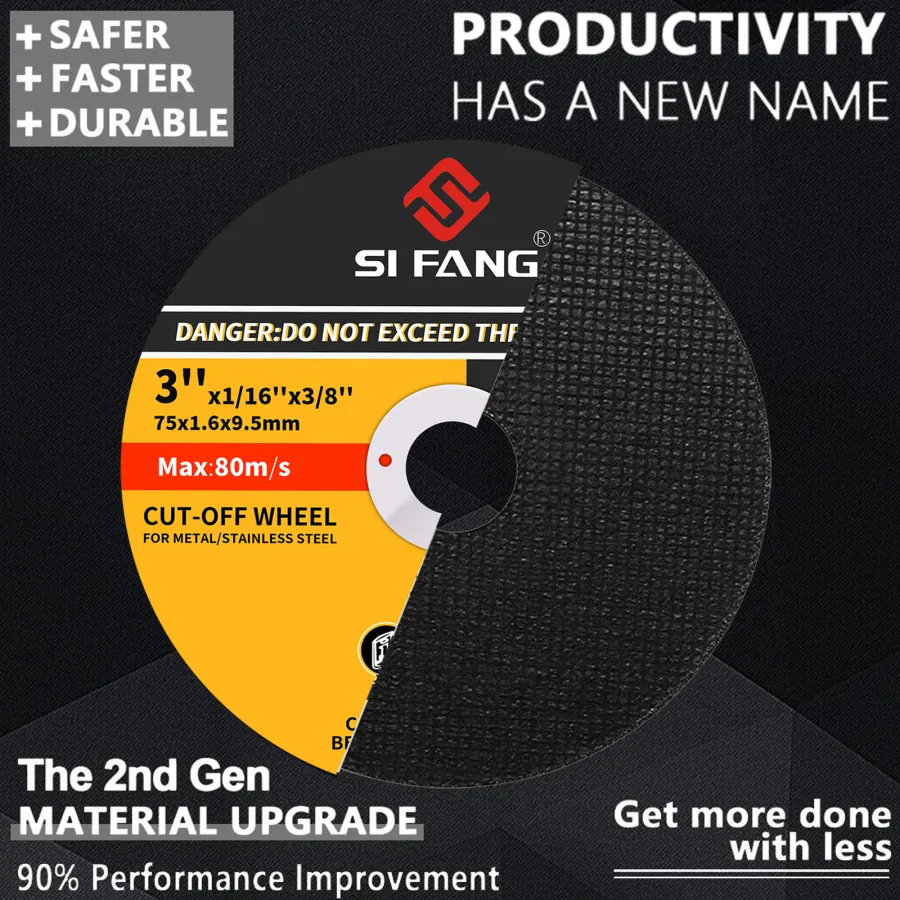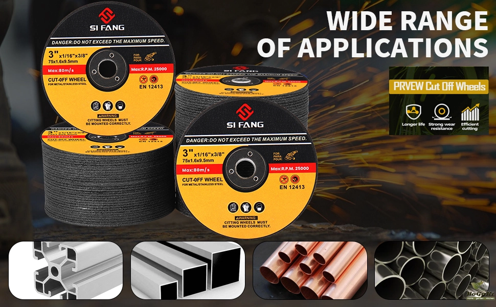 Outside Diameter: 75/115/125mm, Inside Diameter: 22.23mm, Thickness: 1.2/1.6mm. It can operate at up to 13300/25000 RPM and 80 M / S and is compatible with all 75/115/125 mm angle grinders.