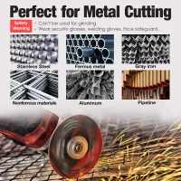 The 3 Inch Cut Off Wheel features a metal center and design of 3/16" thickness cutting off wheels provides fast, precise, and clean cutting performance with minimal burrs and material waste. The cutting disc for metal & stainless steel meet ANSI safety requirements.And operating speeds up to 25000 RPM and 80M/S.