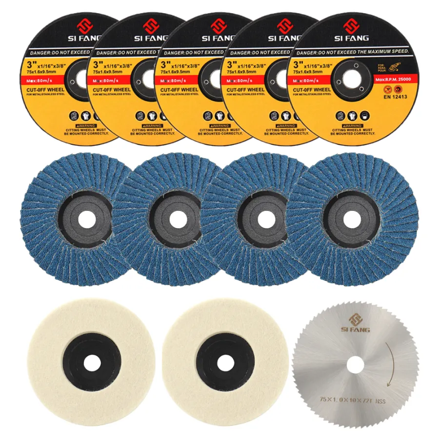 High strength bonding agent for added durability and long life. Innovative design for reduced noise, Grinder grinding wheels are designed for grinding steel and stainless steel for added versatility. Reduced vibration for superior user experience. The 3inch x 3/8inch arbor angle grinding wheel can be safely used on power angle grinders, mini angle grinder cordless die grinder.