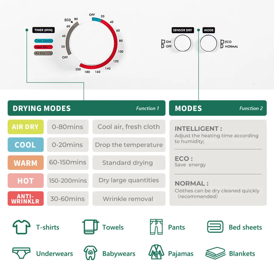 ROVSUN 13.2LB Portable Clothes Dryer,3.5 Cu.Ft High End Front Load Tumble Laundry Dryer with LCD TouchScreen,Stainless Steel Tub