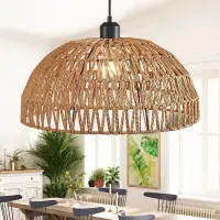 Japanese Style Hemp Rope Pendant Light, Countryside Dining Room, Bedroom, Living Room, E27 Ball Bubble Handmade Pendant Light