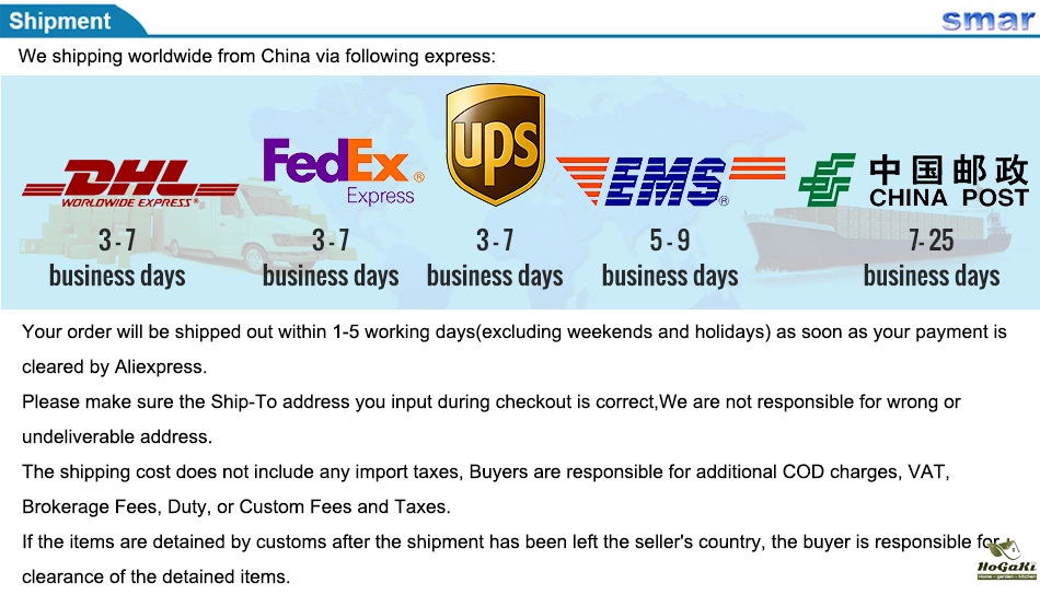 Packages from our warehouse in China will be shipped by ePacket or EMS depending on the weight and size of the product. Packages shipped from our US warehouse are shipped through USPS.