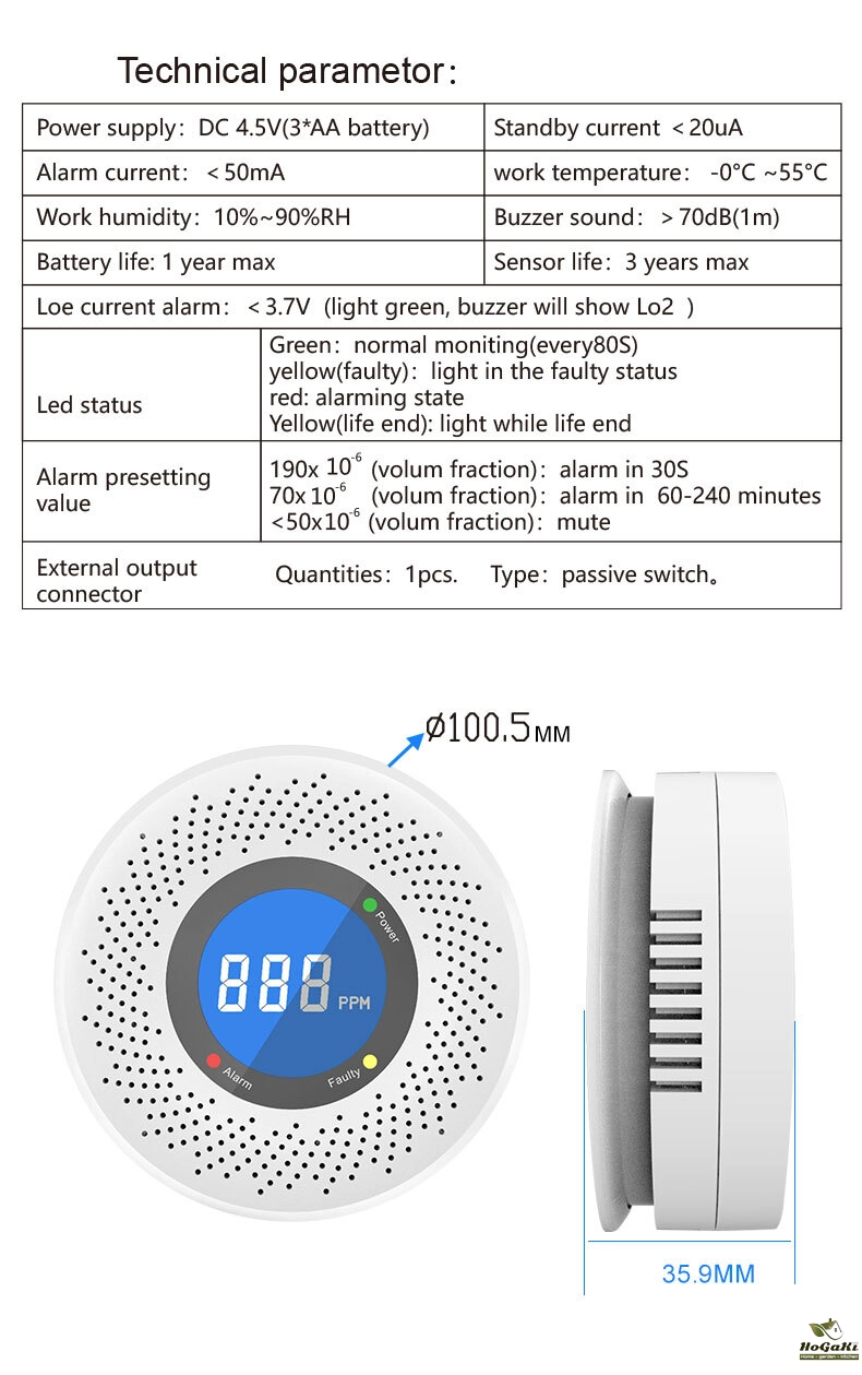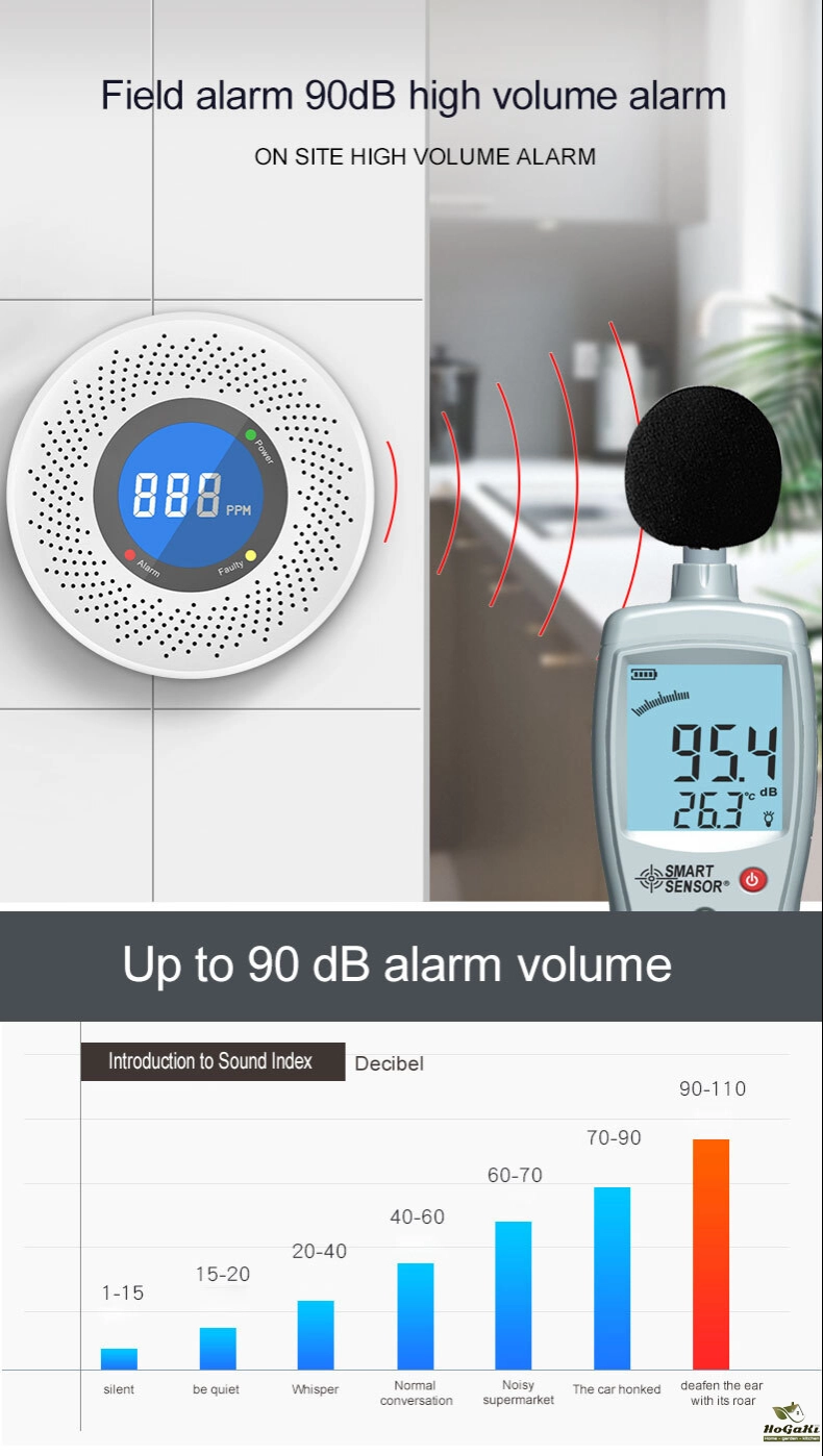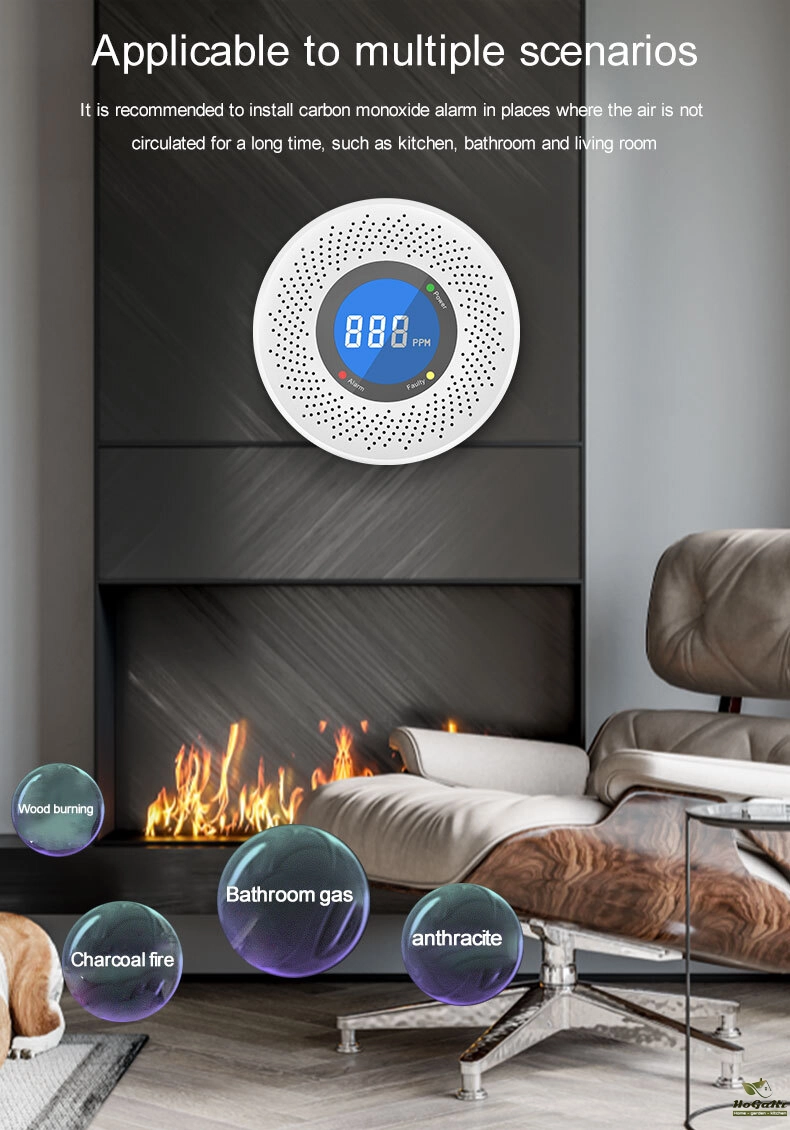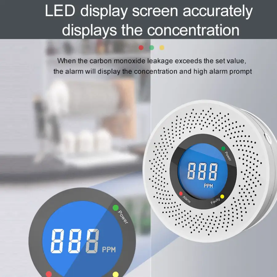 ACJ CO Sensor Carbon Monoxide Alarm Detector Battery Powered With LED Digital Display Sound Warning Suitable For Home Kitchen