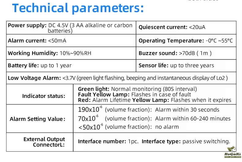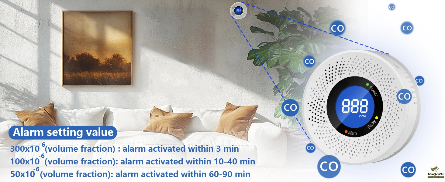 When the CO detector value reaches 300PPM or above, the detector will sound an alarm