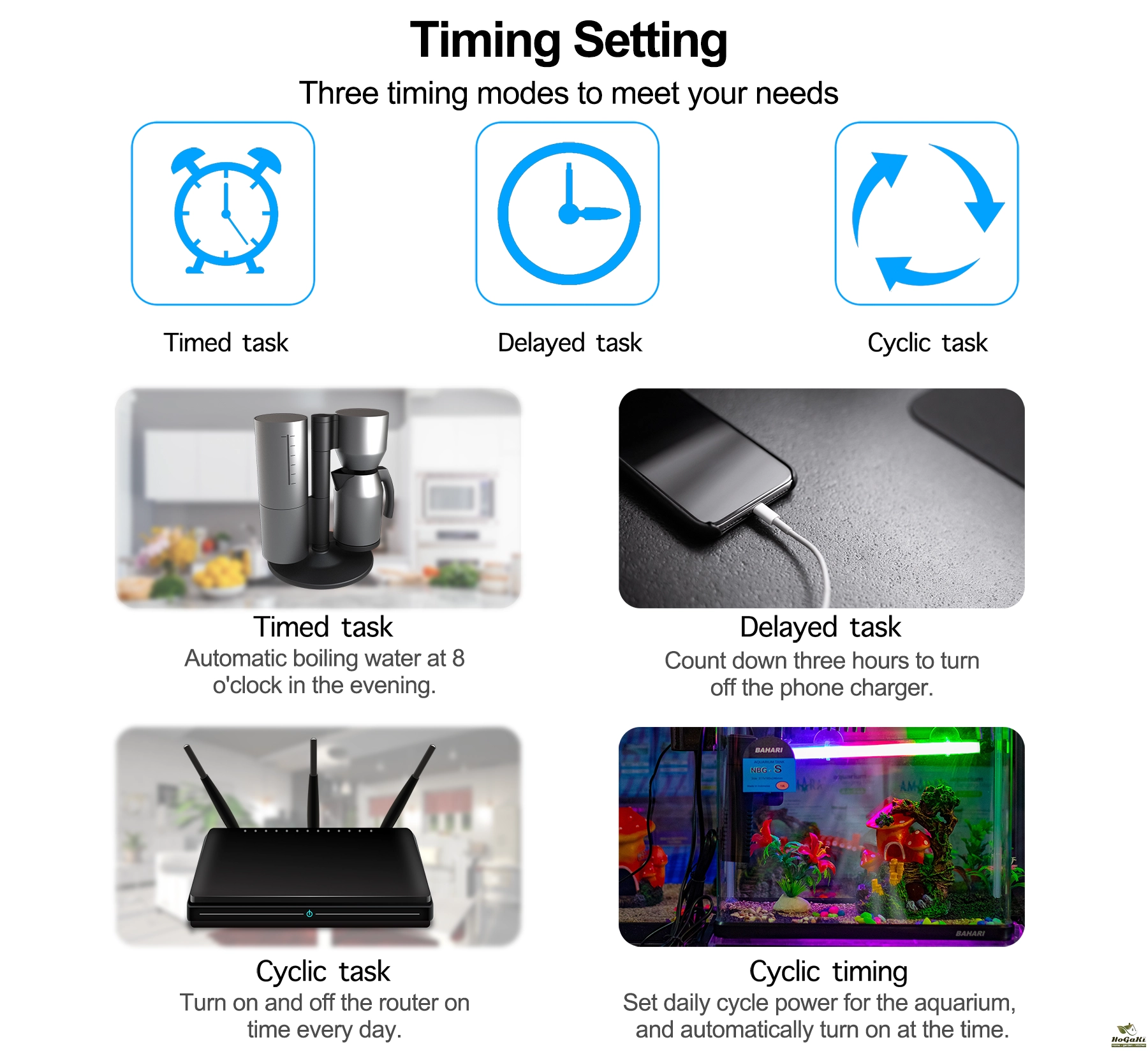- Simply set a timer for your rice cooker or juicer, so when you wake up in the morning, all is ready, low power consumption for Electricity saving