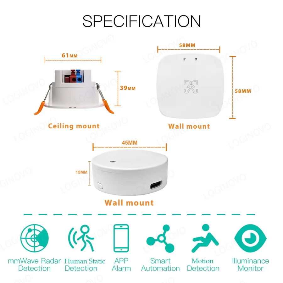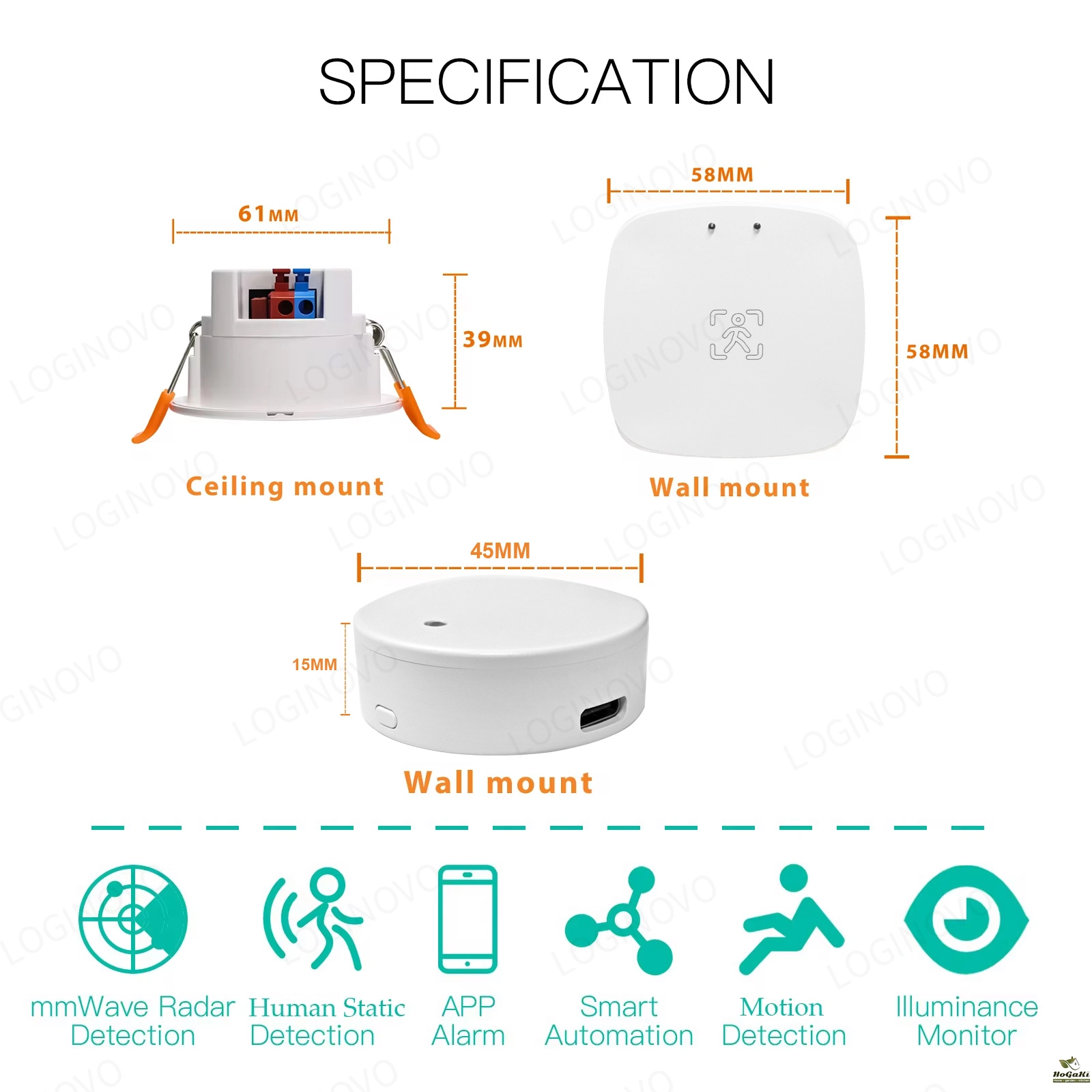 Featured as human presence,human static,human micro motion and human movement motion detection to detect the presence or absence of people in the area,even to detect the static state such as personnel sleeping accurately with mmWave Radar Detection featured.
