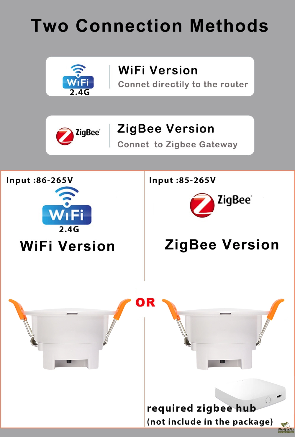 (1)Zigbee sensor need works with tuya zigbee gateway (the gateway not included on the package), if without tuya zigbee gateway,please choose wifi sensor (it only support 2.4ghz wifi)