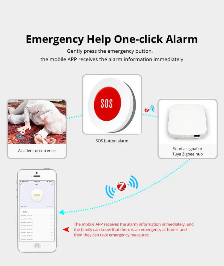 Tuya Zigbee SOS Button Smart Switch Emergency Alarm App Control Alexa Google Home Portable Alarm for Nurse Call Seniors Patient