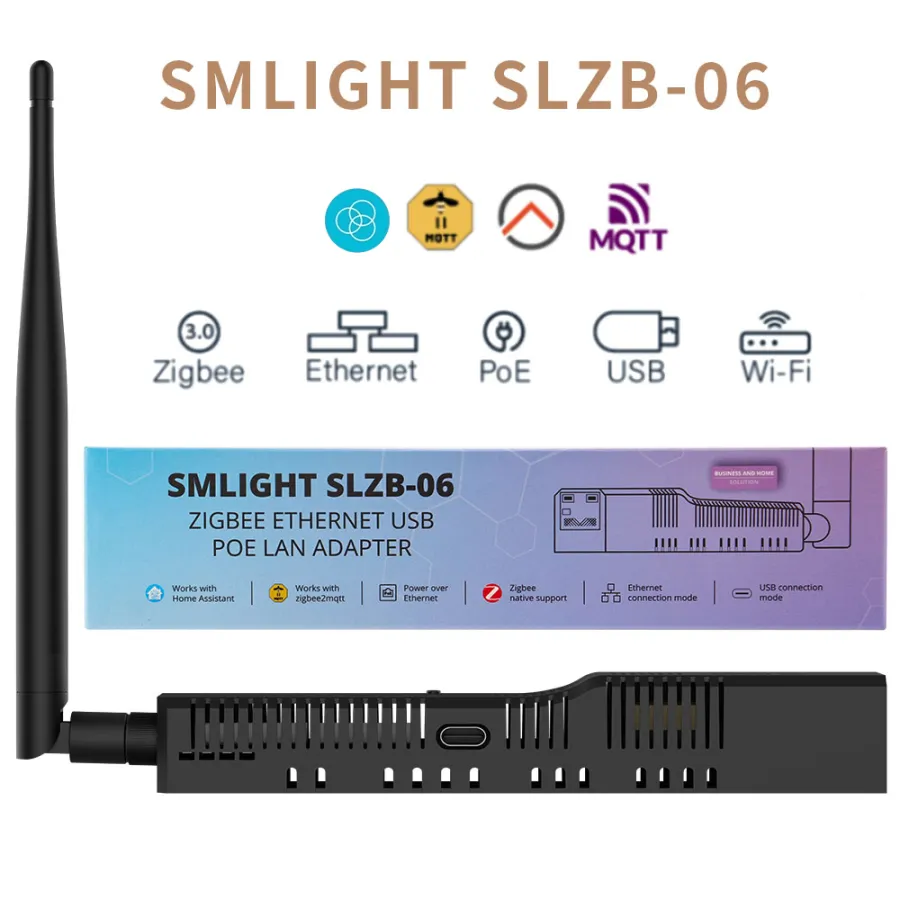 SMLIGHT SLZB-06/06M/06p7 are a network device that serves as a central bridge for managing communication in a Zigbee network. SLZB-06 can also serve a Matter-over-Thread network. The devices are designed specifically for Zigbee2MQTT and ZHA Home Assistant ensuring smooth work out-of-the-box. These devices have the smallest size and reachest packing.