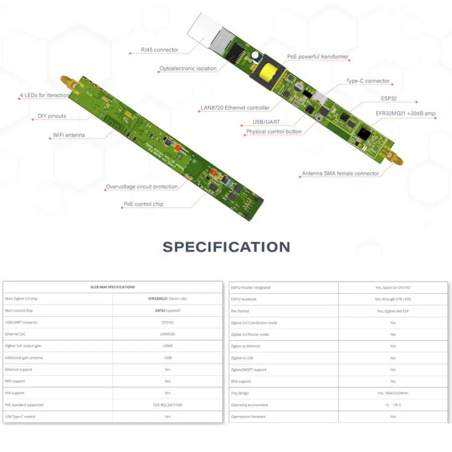 ✅ Options on different Zigbee SoCs: SLZB-06 on CC2652P, SLZB-06p7 on CC2652P7 and SLZB-06M on EFR32MG21.