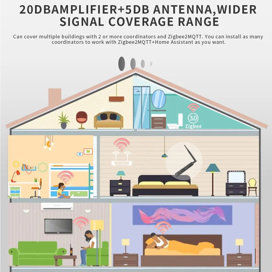 ✅ Can cover multiple buildings with 2 or more coordinators and Zigbee2MQTT. You can install as many coordinators to work with Zigbee2MQTT+Home Assistant as you want.