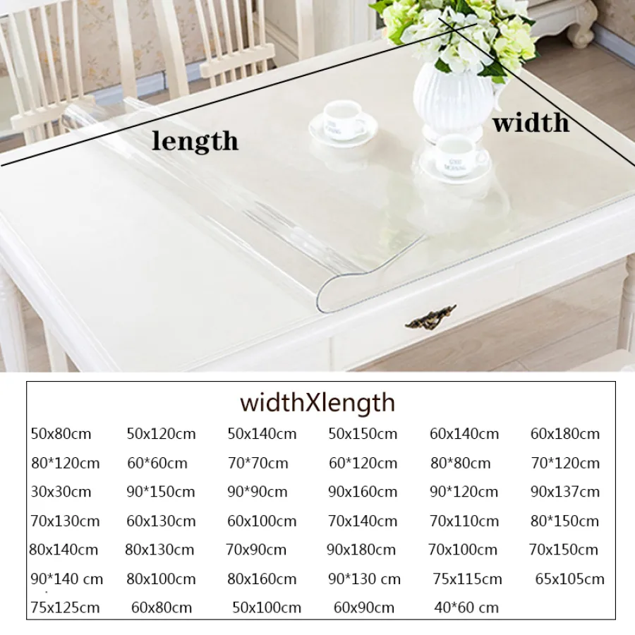 Soft Glass Tablecloth Transparency PVC table cloth Waterproof Oilproof Kitchen Dining table cover for rectangular table