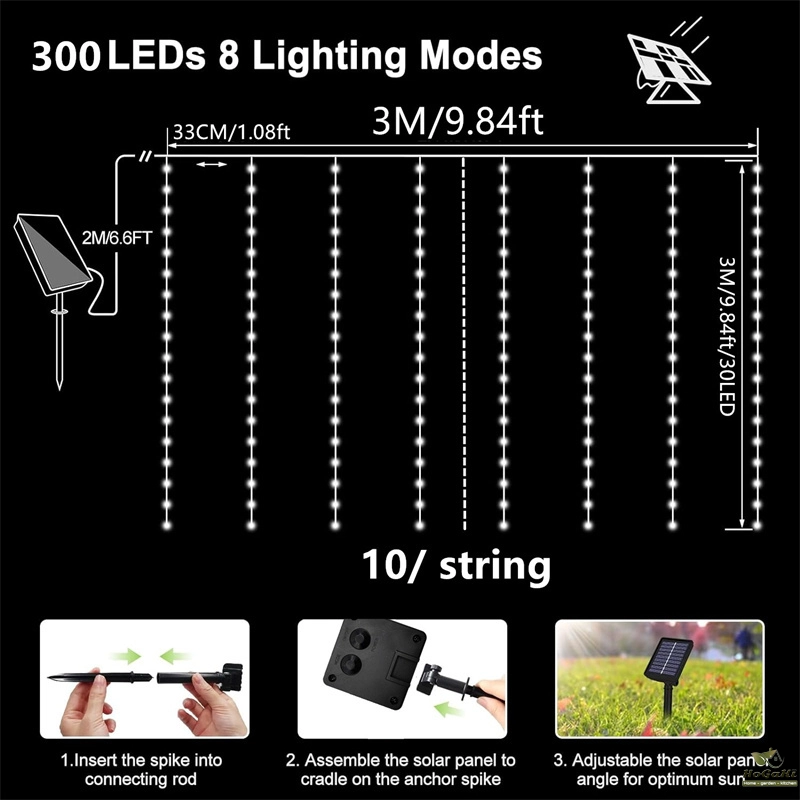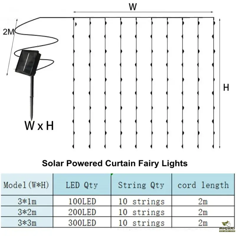 Width: 3m (9.84ft) * Height: 3m (9.84ft) with 300 LEDs