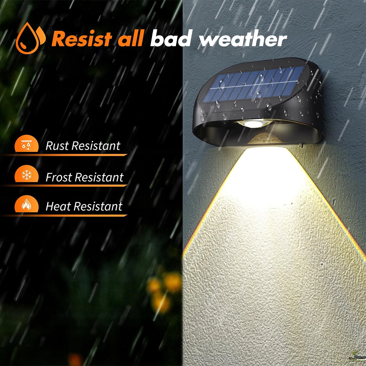 【2024 Upgraded Solar Fence Light】-- Adopts a new upgraded brightening condenser lens, our fence light can emit more concentrated and brighter light, up to 50 lumens. Illuminating the inverted "V" shape on the wall and the semicircular lights on the ground will decorate your courtyard and make it more outstanding