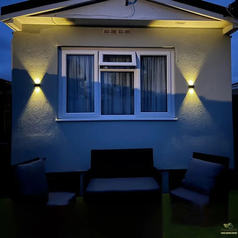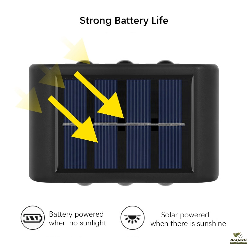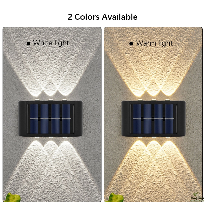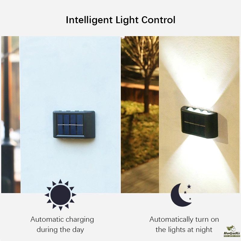 【Solar Wall Lamp Outdoor 】The solar outdoor wall lamp adopts a top and bottom emitting design, with three LED beams arranged alternately at the top and bottom, which improves the brightness of the lamp. Solar lights can intelligently sense changes in light, automatically charge during the day, and automatically light up at night.
